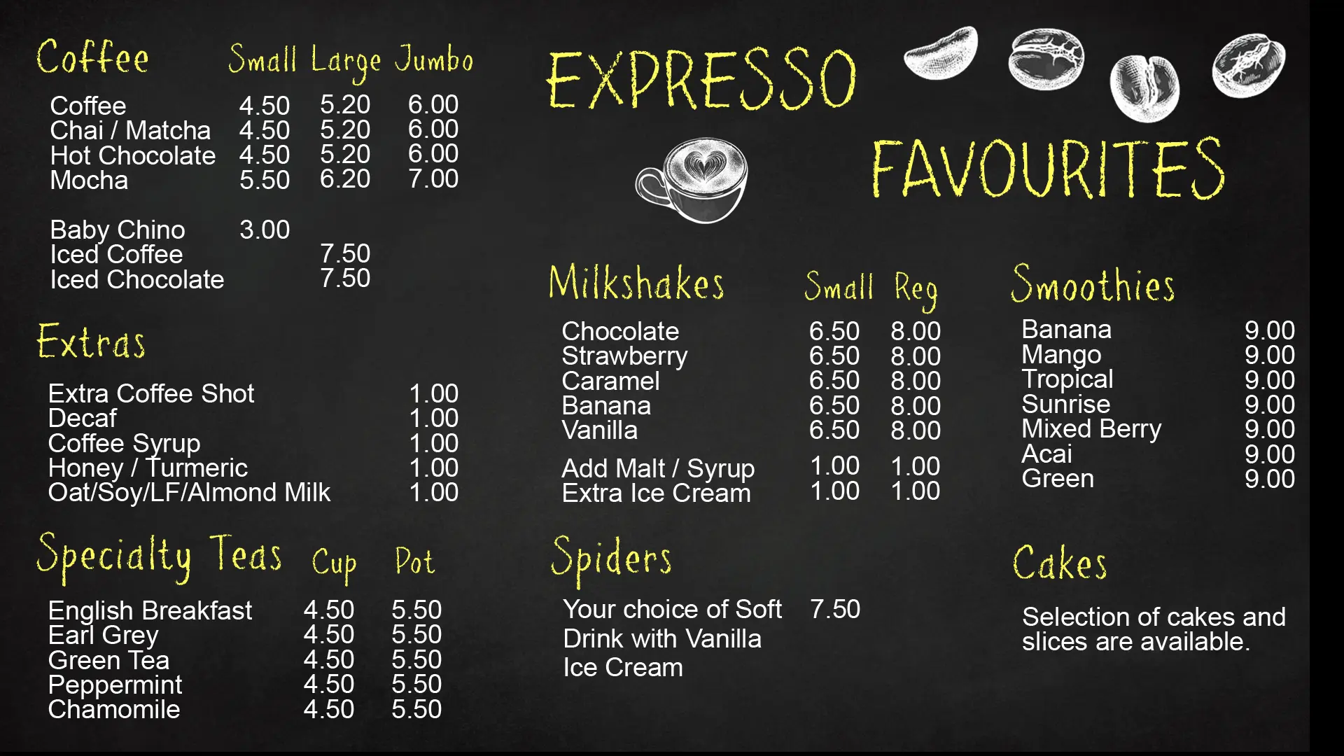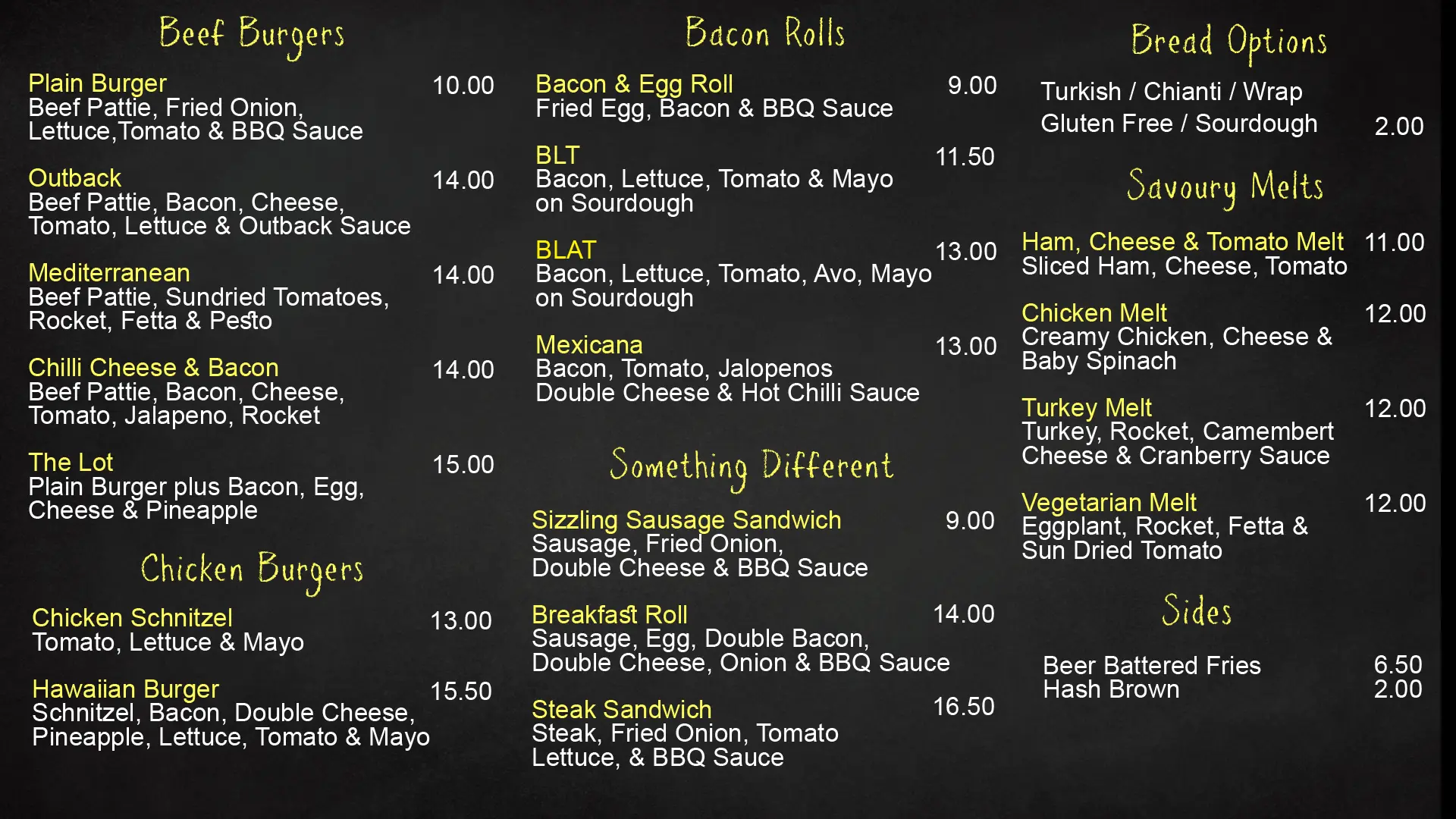 Please note: Full menu only available on weekdays. Limited menu on weekends.